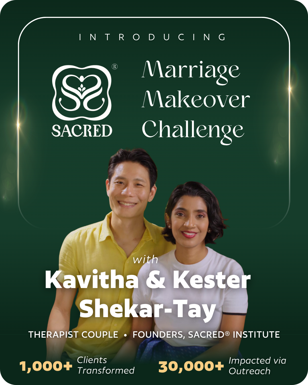 SACRED® Institute is a Singapore-based relationship education platform founded in 2019 by therapist couple Kavitha and Kester Shekar-Tay